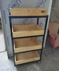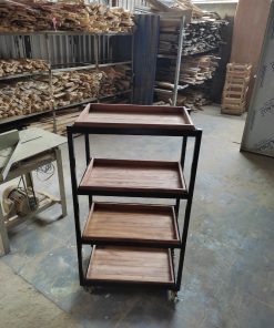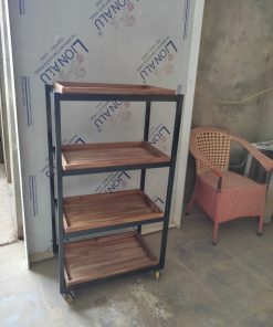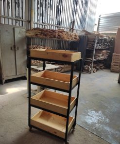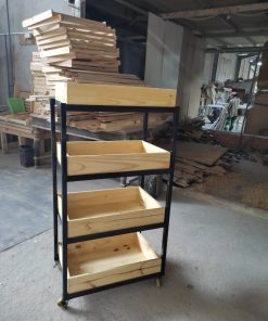 – Kệ 5 tầng bằng gỗ có kèm thêm bánh xe di chuyển dễ dàng.
